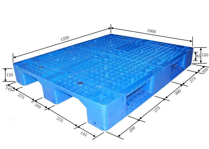 煙草塑料棧板的尺寸:1250*1000*150川字網格型內置鋼管塑料棧板和1125*700*150、1150*735*150mm七腳平板型塑料棧板。